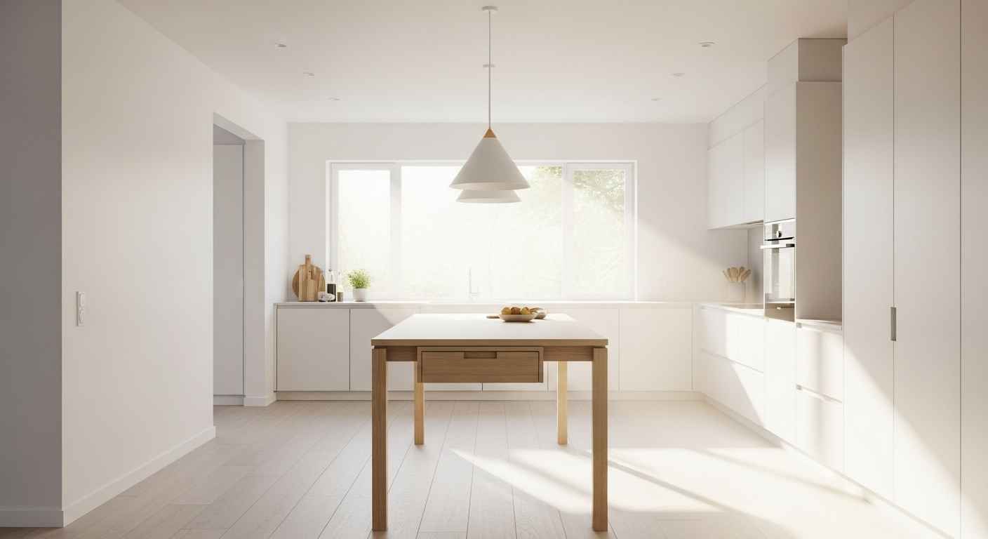 You do not always need to buy a custom island. A long console or sofa table can work perfectly. It provides the right scale and often has a drawer or shelf. This is a fast and affordable solution. Check secondhand stores for a solid wood table with good proportions. You can always add a coat of durable paint to make it kitchen-ready.