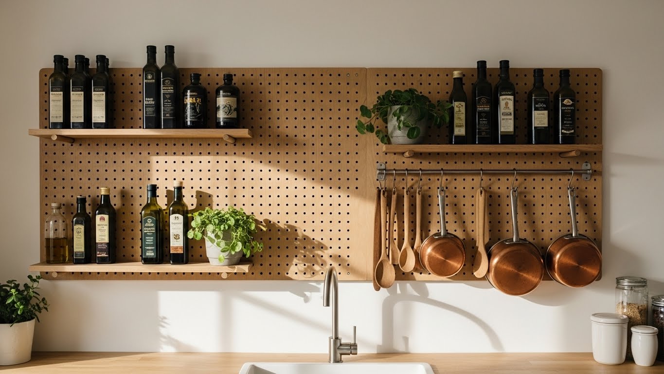 A pegboard can change your kitchen. It turns empty wall space into smart storage. You can hang almost anything. Start with a basic board and a few hooks. Add more as you see what works for your space. It is a simple project with a big effect.