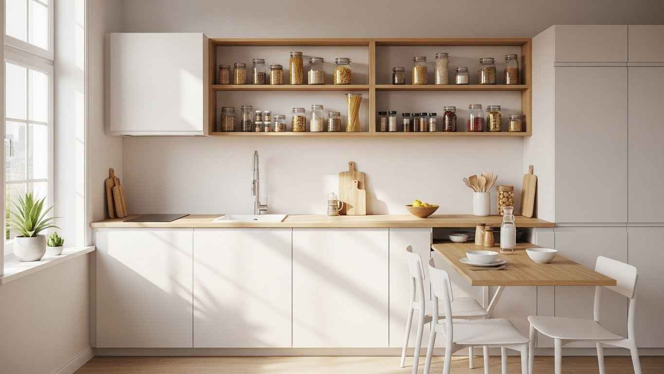 Use your wall space from floor to ceiling. Tall, narrow shelving units fit into tight spots. They hold dishes, pantry items, and cookbooks. This keeps your countertops clear. Use uniform baskets or bins to hide clutter and maintain a clean look. A simple DIY tip is to install a basic ladder shelf. It gives you multiple tiers without a permanent installation. This approach makes a small kitchen feel much larger and more orderly.