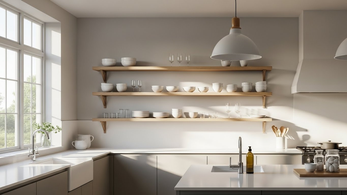 Open shelving makes a kitchen feel larger and more personal. It replaces heavy cabinets with clean lines and easy access. This approach lets you display favorite items and keep essentials within reach. The look is light, modern, and welcoming.
