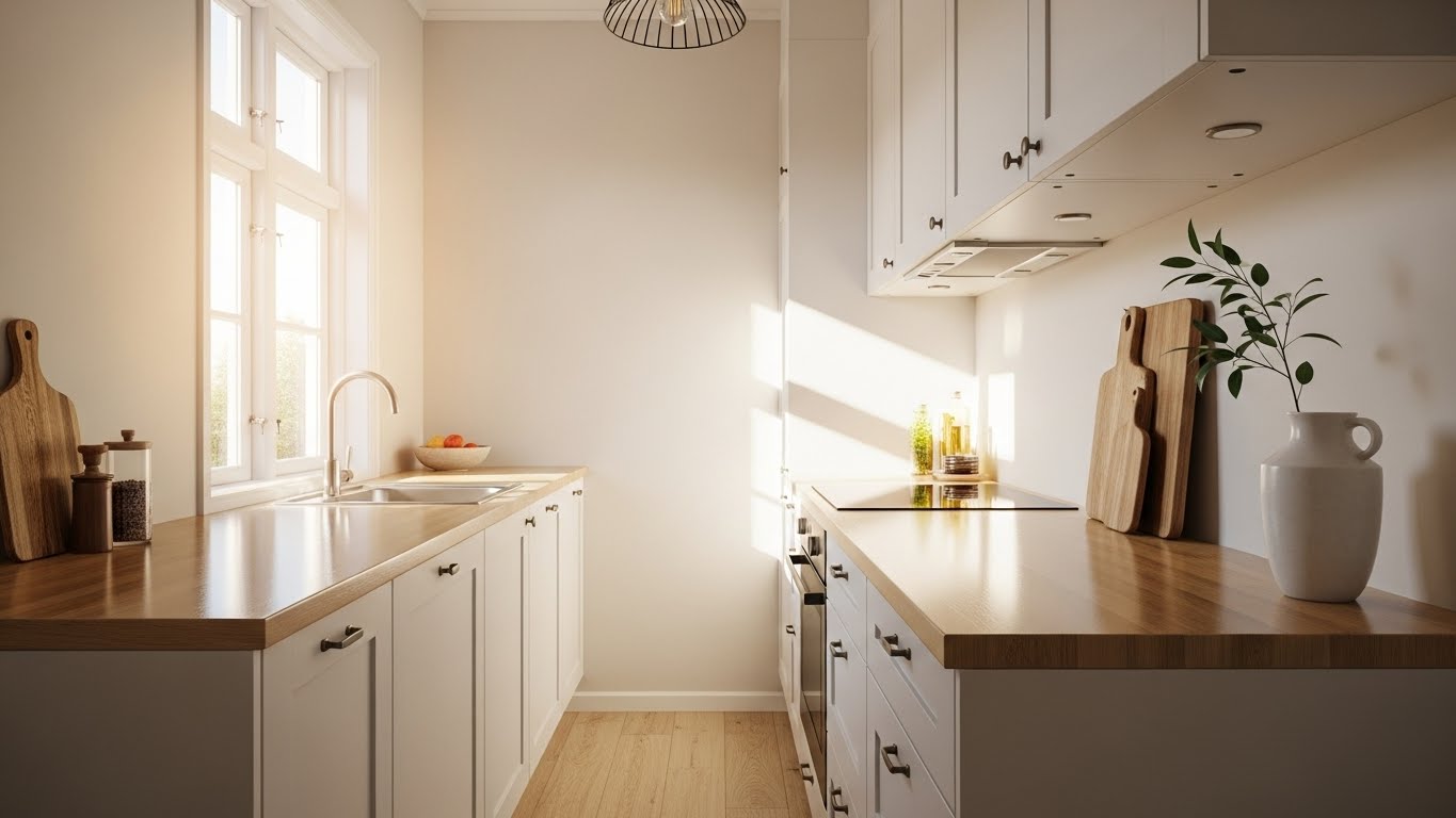 In a galley kitchen, continuity is key. Using the same material on both sides makes the space feel unified. Keep the color light to reflect light. A single, uninterrupted surface on each side improves workflow. A seamless laminate is a cost-effective way to achieve this clean look. Avoid busy patterns that can make the narrow space feel cluttered. This approach maximizes every inch.