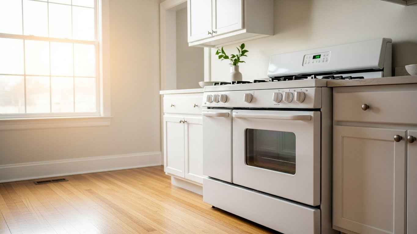 Minimalism focuses on function and clean lines. A simple white stove is ideal for this style. Keep counters completely clear. Store all small appliances out of sight. Choose integrated handles or push-to-open mechanisms on cabinets. This creates a peaceful, clutter-free cooking environment. Use a tension rod under the sink to hang spray bottles and free up cabinet space.